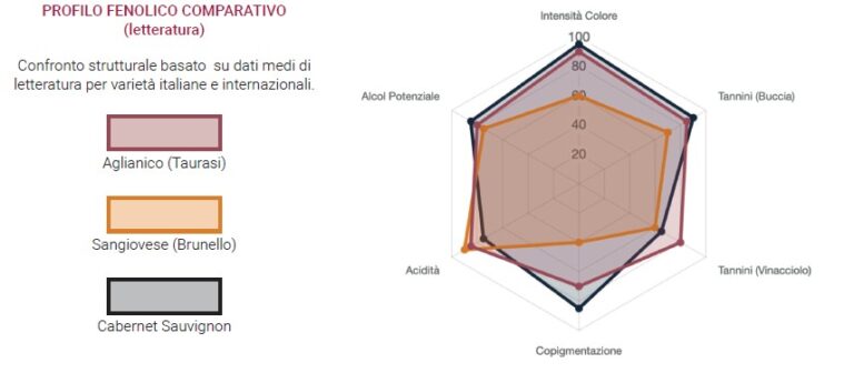 Beneficiano dell’aggiunta di tannini enologici per fissare il colore che altrimenti precipiterebbe. - Cluster “Basso Profilo” (Corvina): Bassi fenoli. Richiedono tecniche come l’appassimento per concentrare i soluti.
